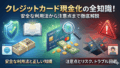 クレジットカード現金化には、商品を売却する「買取式」と、特典で現金を得る「キャッシュバック式」があります。自分で行うと換金率は高まりますが、カード会社の規約違反により利用停止や強制解約になるリスクが非常に高いです。また、悪質業者による詐欺トラブルも多発しています。安全に現金を調達するなら、正規の機能である「キャッシング枠」の利用が推奨されます。